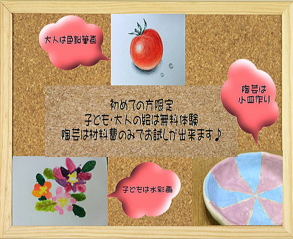 絵や陶芸がしてみたいけど・・・と迷っている方。是非一度試してみてください。